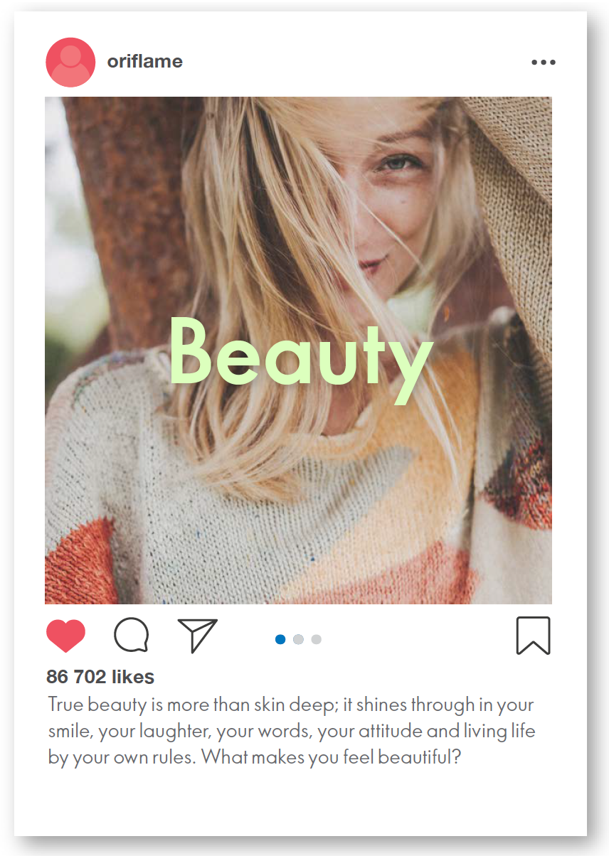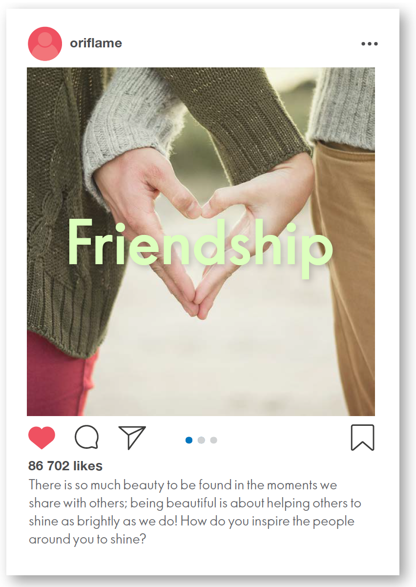 When we considered how best to communicate our brand through consultants' posts on social media, it became clear that we needed to define our brand personality. If Oriflame was a person, what kind of person would they be? How does Oriflame feel about beauty? Where would he/she like to go on vacation? What does he/she care about? It was important to understand who Oriflame is in order to reach out, influence and inspire others who share the same dreams and passions.